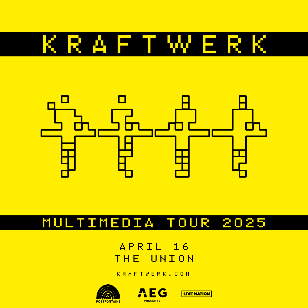 KRAFTWERK: MULTIMEDIA TOUR 2025 - 50 YEARS OF AUTOBAHN Wednesday, April 16, 2025 7:00 PM 10:30 PM 19:00 22:30 The Union Event Center 235 North 500 West Salt Lake City, Utah, 84116 United States (map) Google Calendar ICS AEG & POSTFONTAINE PRESENT: TICKETS KRAFTWERKDoors: 7pmShow: 8pmAll agesIf you want to learn more about Kraftwerk and their products, click here.